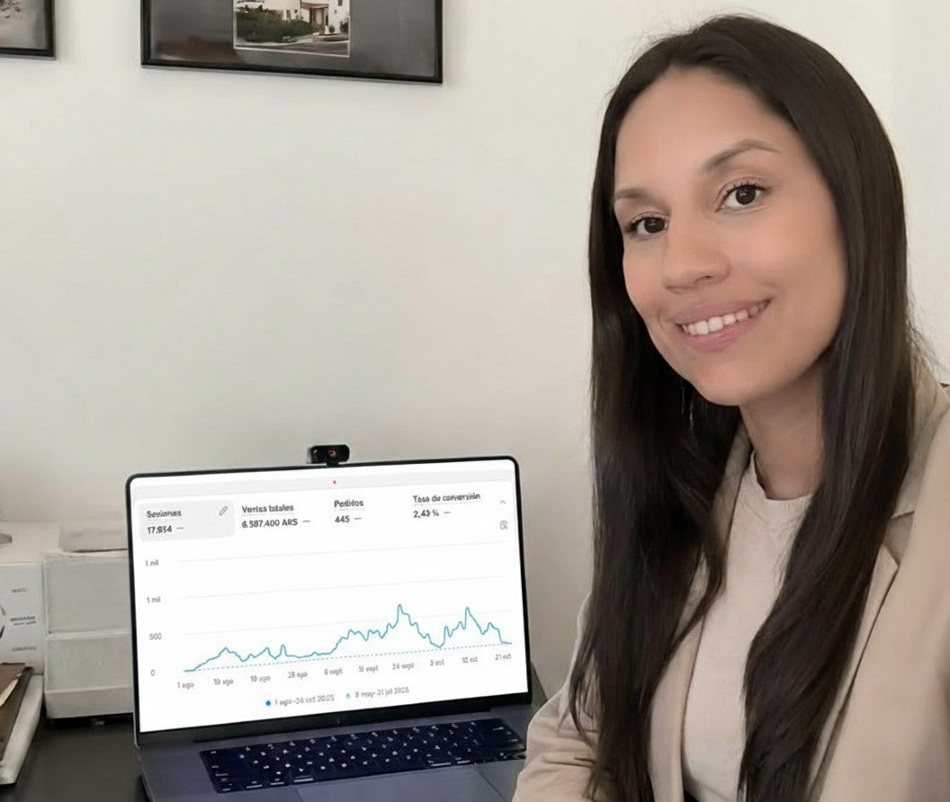 Soy Andrea Belén, emprendedora digital. Estuve exactamente donde estás hoy: invertí miles de dólares en publicidad sin rumbo, probando estrategias que no funcionaban, hasta que encontré el método para vender infoproductos y servicios digitales de manera predecible y escalable con Shopify + Meta Ads.